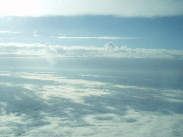 The first summer cloud of 2003; just a little nub of cumulus, dancing upon the flat winter clouds.